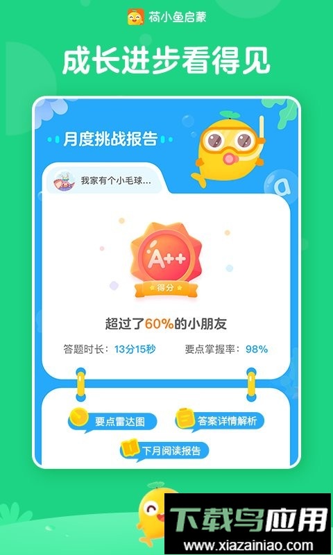荷小鱼是一个专注于儿童兴趣启蒙的教育平台,它依托科学设计的内容体系,为孩子提供高品质的启蒙课程。平台融合真人视频与游戏化互动环节,创造寓教于乐的学习环境,帮助孩子在趣味体验中吸收知识,开阔眼界。