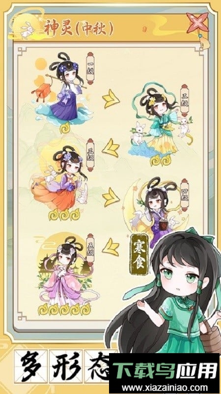 这款游戏营造了一种相对悠闲佛系的养成氛围,你将有机会召唤出众多与节日相关的可爱神灵,并对他们进行悉心培养;借助神灵们独特的力量,逐步驱散世间邪祟,亲手描绘出一幅崭新而美好的人间画卷。