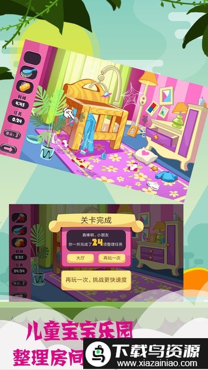 儿童宝宝乐园是一款富有教育意义的趣味游戏,帮助宝宝学习整理房间和认识世界;在游戏引导下,孩子可以逐步将杂乱的空间收拾得整齐有序,从而将这种良好的习惯延伸到日常生活里。