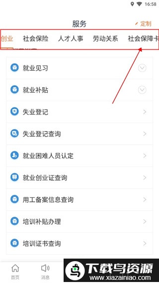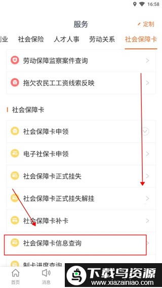 3.在分类列表中滑动选择社会保障卡功能板块;