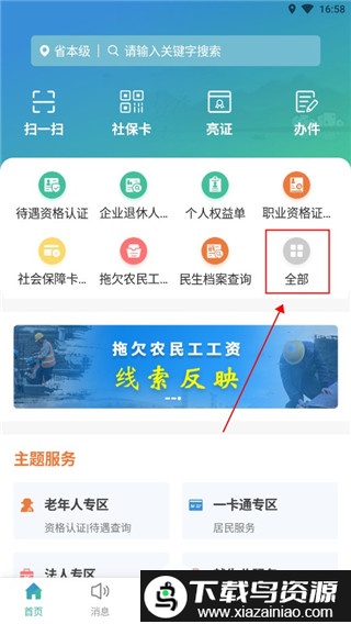2.在首页找到并点击全部服务入口;