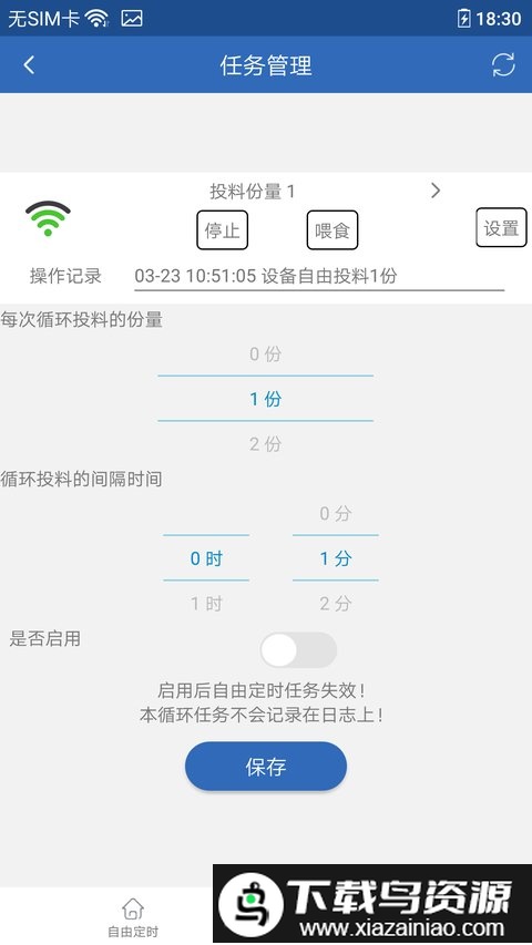 3、允许设定定时喂食计划,并显示约十条近期操作日志;