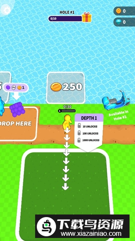 1.玩家需要从草坪起步,目标明确地挖掘深洞;