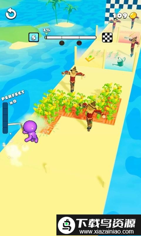 1、操控小人不断向前奔跑收割,尽可能保持较长的队伍抵达终点,体验独特的闯关魅力;