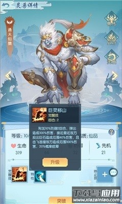 灵兽孵化后将存放于宝囊,选择指定灵兽可展开培养,操作包括等级提升、洗髓淬炼、异符镶嵌等。