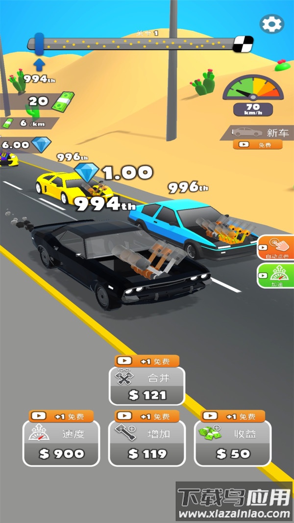 这是一款充满速度激情的赛车游戏,玩家能够亲手改造自己的座驾,提升车辆性能,在赛道上全力冲刺,争夺冠军荣耀。游戏结合了轻松放置的玩法,让你在加油积累资源的同时不断强化爱车,通过一次次升级赢得更高级别的赛事,体验持续成长的成就感。