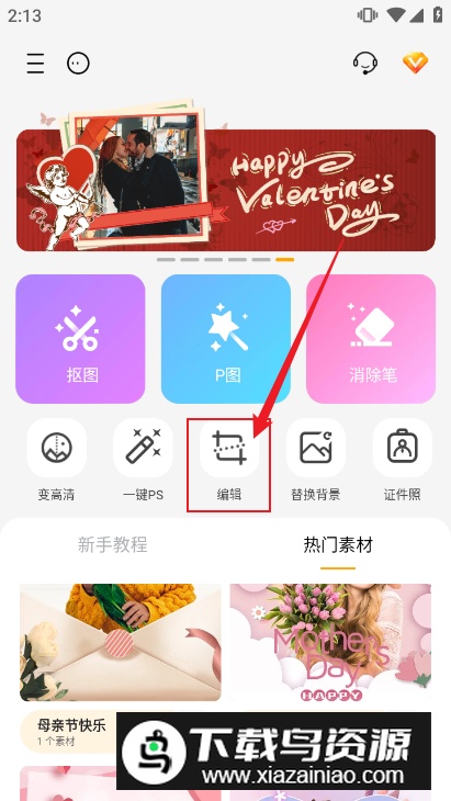 1. 启动应用后,在首页点击编辑功能入口;