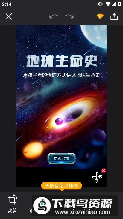 素材库:提供丰富的背景、字体、模板、融合素材、贴纸、滤镜、相框及纹理资源;