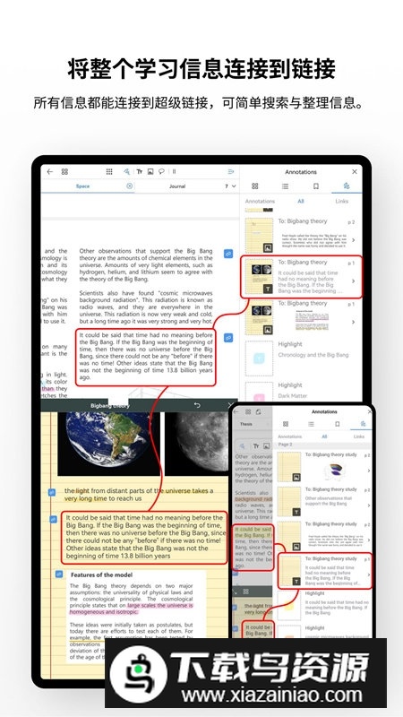 1.在PDF与笔记本中自由书写笔记,添加文字、图像等多种形式的注释;