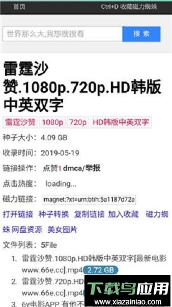 3. 可以直接下载所需资源,或复制磁力链接,操作过程非常快捷。