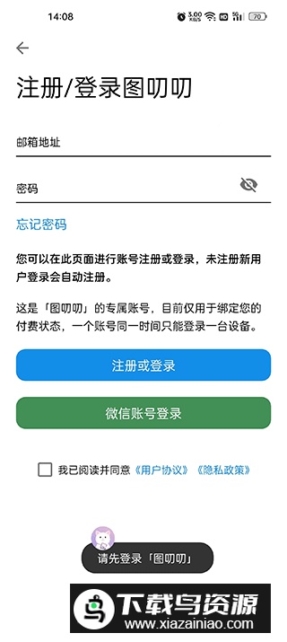 2、软件支持使用微信或手机号码两种方式进行注册并登录。