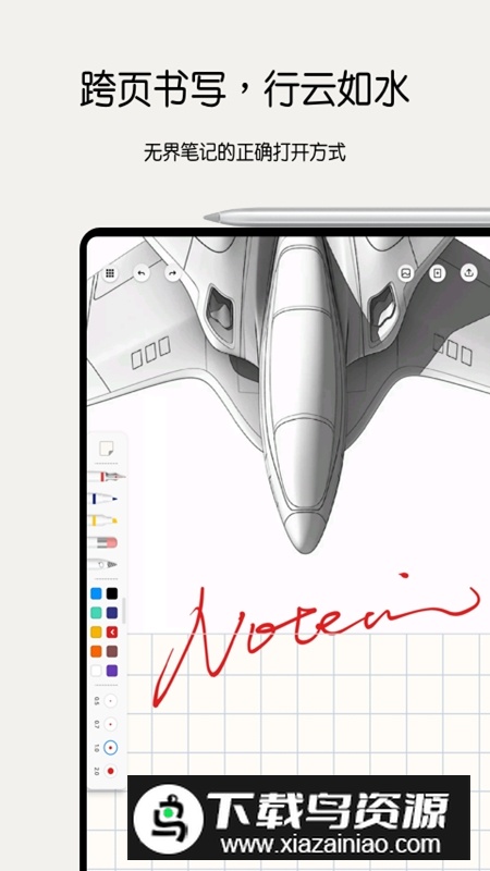 跨页连续书写,笔触连贯自如;无边界笔记模式带来更自由的创作空间;缩放操作极其顺滑,毫无卡顿;在移动设备上也能获得真实纸笔般的书写感受;文字与图片都能进行快速调整与编辑。