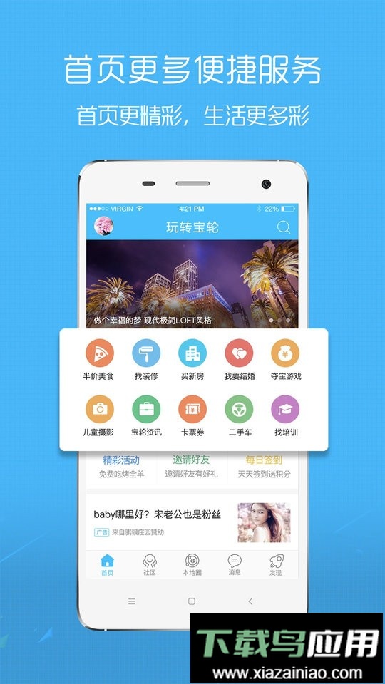 玩转宝轮app是宝轮地区广受青睐的同城生活服务软件,本地居民若想获取新鲜的热点信息或寻找便捷的生活服务,这款应用都能轻松满足;无论是寻找美食娱乐,还是进行二手物品交易,用户都可以快速定位到相关板块获取所需内容。