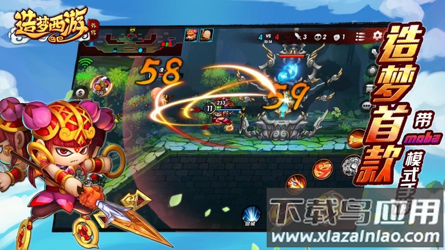 在传统横版动作游戏的基础上,本作创新融合了MOBA元素,可实现多人团队对抗。