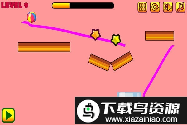游戏的核心是物理解谜,你需要动笔绘制线条,这些线条将构成小球滚动的路径;依靠重力作用与你设计的轨道,引导小球成功进入玻璃筒内;在行进路线上,尽可能收集散落的星星,用以解锁后续更多挑战;游戏共准备了六十个精心设计的关卡,难度逐步提升,等待你来破解。
