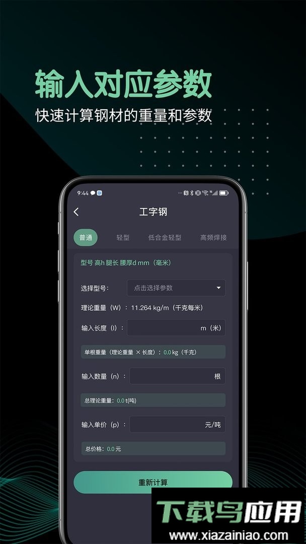 钢材重量计算器免费版是一款便捷的手机工具,能帮助用户高效计算多种规格钢材的重量。只需输入尺寸与长度参数,即可快速获得准确结果。该应用操作直观,适用于钢铁生产、贸易流通及建筑工程等场景,显著提升计算效率与精确度,是相关行业人员的实用助手。