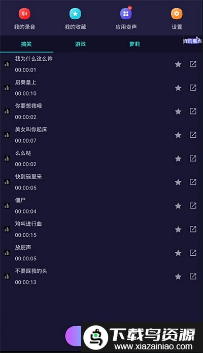 通过多样化的声音效果,使微信语音聊天变得更加生动有趣;功能强大且易于操作,支持自定义音效,满足你的个性化需求。可配合微信好友、朋友圈、新浪微博、腾讯微博、qq及邮件等多种场景使用。该软件集成了变声、录音与音效播放功能,还能将喜欢的录音本地保存。