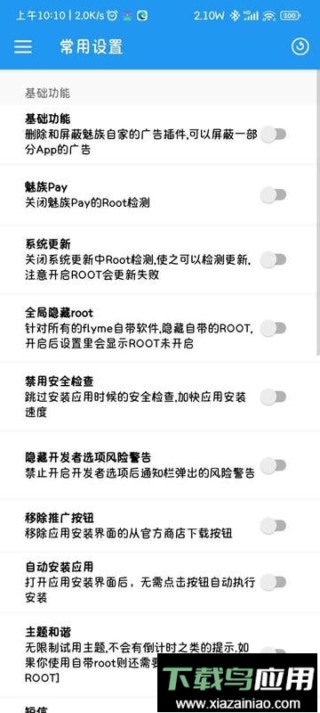 该工具可以实现去除系统内置应用的广告、冻结不必要的预装程序、通过hosts进行广告屏蔽、自定义状态栏显示、修改网速显示以及主题美化等多种功能;这些特性能让你的手机界面更清爽美观,使用起来也更便捷有趣。