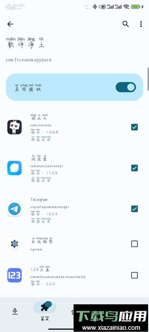 1、软件净土能够处理广告注入、组合弹窗注入等情况。通过添加应用包名即可启用相关功能;其非主流模式目前仅支持未加固应用的清理。