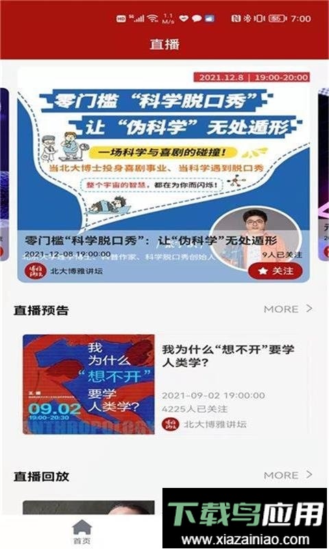 直播内容:例如“生活中的进化论——植物的智慧,达尔文的思想”等主题。