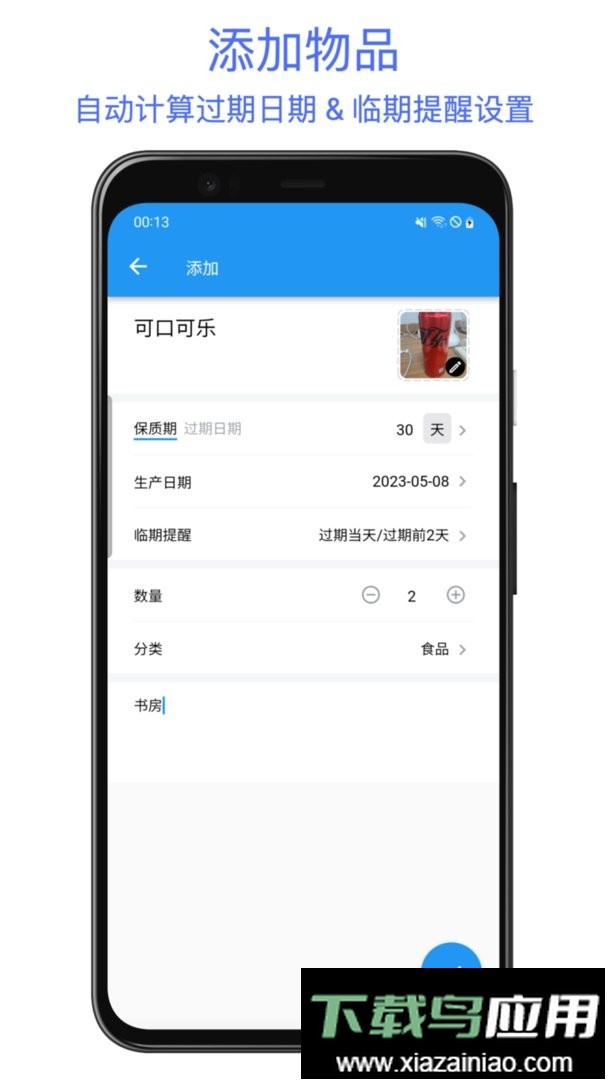 【物品信息】可添加物品的过期时间,自动生成过期倒计时。