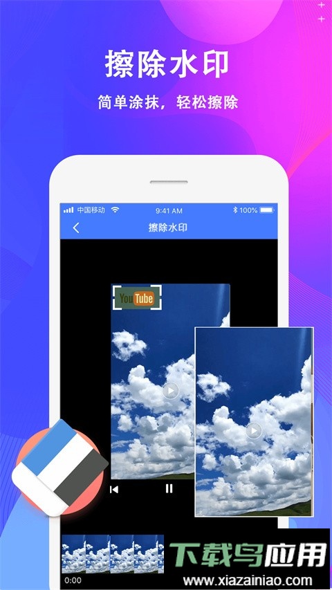 支持各类热门特效视频,一键即可去除视频水印;可消除照片与视频中的文字水印,并对画面进行美化处理。