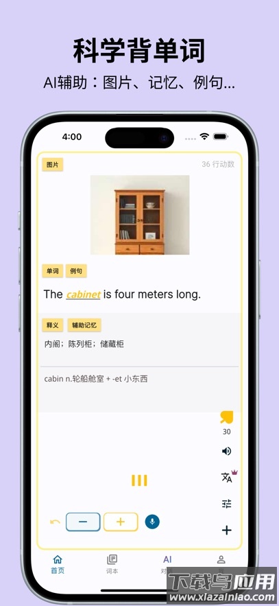 软件采用优质AI模型,提供智能配图、记忆口诀、口语练习伙伴等多种学习支持。