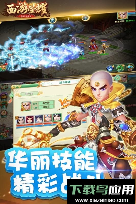 以西游神话为背景的仙侠回合制冒险游戏带来视觉与玩法的双重享受,精致的画面呈现绚丽多彩的奇幻世界,技能特效华丽震撼,多种战斗模式与即时PK让玩家随时感受热血对决的畅快。