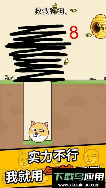 快来拯救狗狗,用画线的方式抵御蜜蜂进攻;这款游戏玩法魔性且充满挑战,需要你在每个关卡中手绘线条来保护魔性狗头。不同关卡中狗头面临的威胁各不相同,极大考验玩家的观察与思考能力;仔细分析场景后,画出合适的线条即可过关。