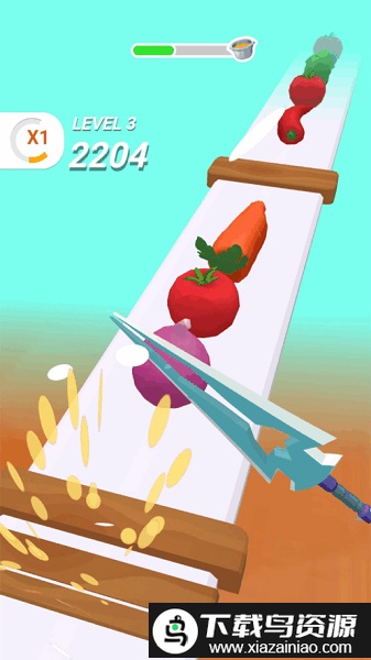 这是一款能够帮助大家释放心情的休闲小游戏,拿起你的刀具开始切割吧,在长长的流水线上,会不断出现各式各样的蔬菜,你的任务就是将它们精准切开,操作看似简单却需要玩家反应灵活,否则很难将这些蔬菜完整地处理好哦!