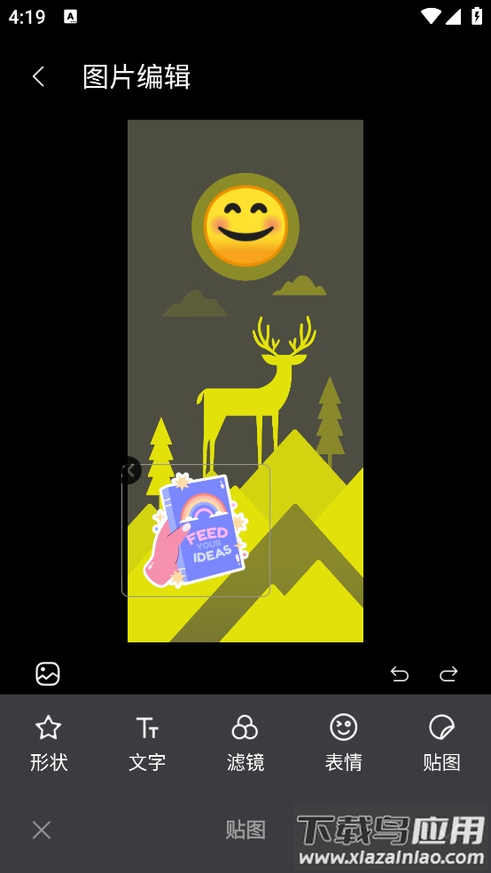 除了添加文字,还可选用大量可爱贴纸来装饰和美化图片。