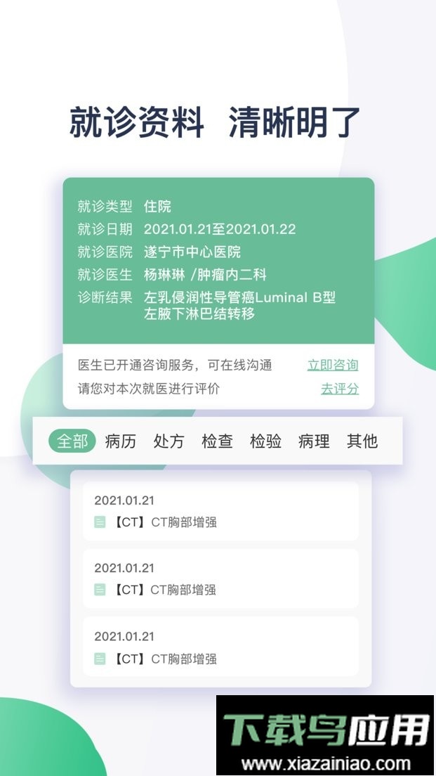 2、高效解决就医相关需求,平台提供的就诊资料全面准确;