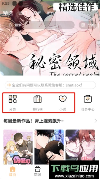 1、进入应用首页,可以直接点击查看各类官方推荐的热门小说与漫画。