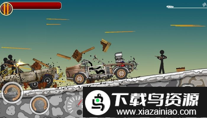 1、前进路上会遭遇其他火柴人的攻击,需要用车载武器及时反击并将其消灭;