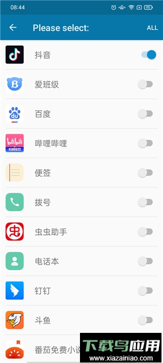 2、点击Select apps选项,选择需要显示在灵动岛上的应用,右上角ALL按钮可一键全选。