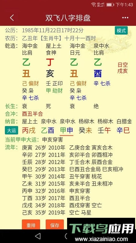双飞八字排盘免费是一款提供趣味算命功能的生成工具,它通过详细的八字排盘为用户进行人生吉凶预测,带来全面而深入的计算方式。