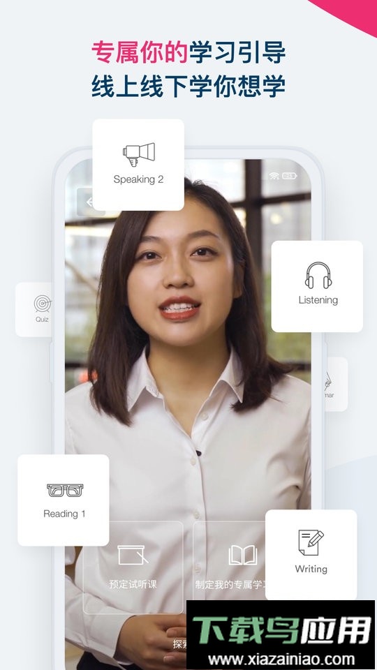 在中心或在线跟随学术专家,掌握地道英语表达; 智能学习计划与个性化进度管理持续激发动力,提升学习效率; 超过1000小时的学习资源,融合真实生活场景设计,帮助您自信开口交流。
