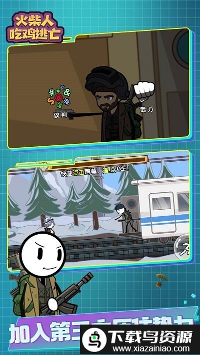 火柴人吃鸡逃亡手机版拥有相当多样的地图场景,每一处都能带来截然不同的战斗体验,你需要挑选自己认为实力强劲的队伍加入;在战场上搜集各类枪械与爆炸物,参与这场激烈的生存竞赛,究竟谁能隐藏到最后成功吃鸡呢?喜欢的就在本站下载。