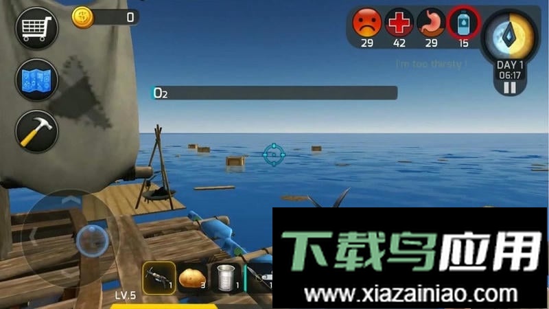 手工艺与建造:体验丰富的制作系统,打造工具、建筑、地板、支柱、楼梯等漂流设施。