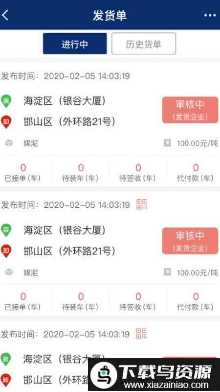 3、查看进行中的货物,实时了解审核及运输状态;