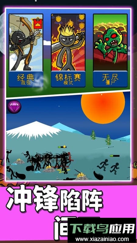 亲历火柴人军团之间的宏大对决,招募弓箭手与战士来应对如潮水般涌来的敌人。在这片激烈的战场上,你必须具备统帅般的头脑,只有合理配置火柴人士兵才能赢得最终胜利。