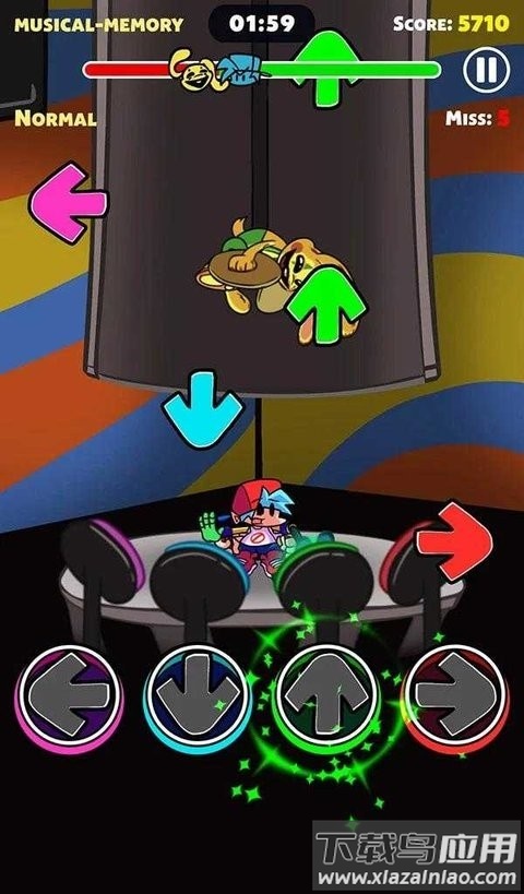 3、游戏中BF将与彩虹朋友进行激烈的音乐对决,伴随节奏展开刺激的舞蹈比拼