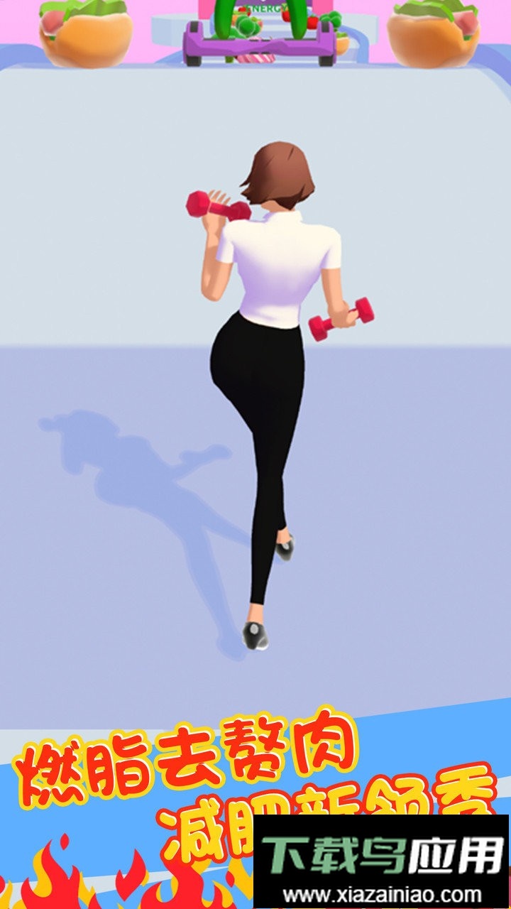 这是一款十分有趣的休闲益智游戏。玩家可以通过食用汉堡、番茄、冰淇淋、热狗,以及使用举哑铃、跑步机、跳绳等多种方式,来调整角色身材;当达到标准体型后走向终点即可获胜,若身材低于或高于标准要求,则挑战失败。游戏体验轻松愉快,期待你的加入!