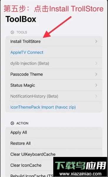 第五步:点击“Install Troll Store”按钮,请注意不要进行其他无关操作。