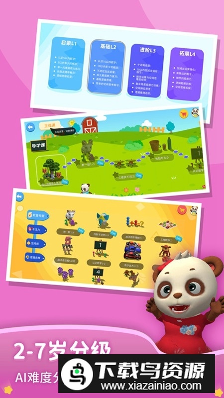1.按2至7岁分级设置,AI智能调节难度,助力幼小衔接;
