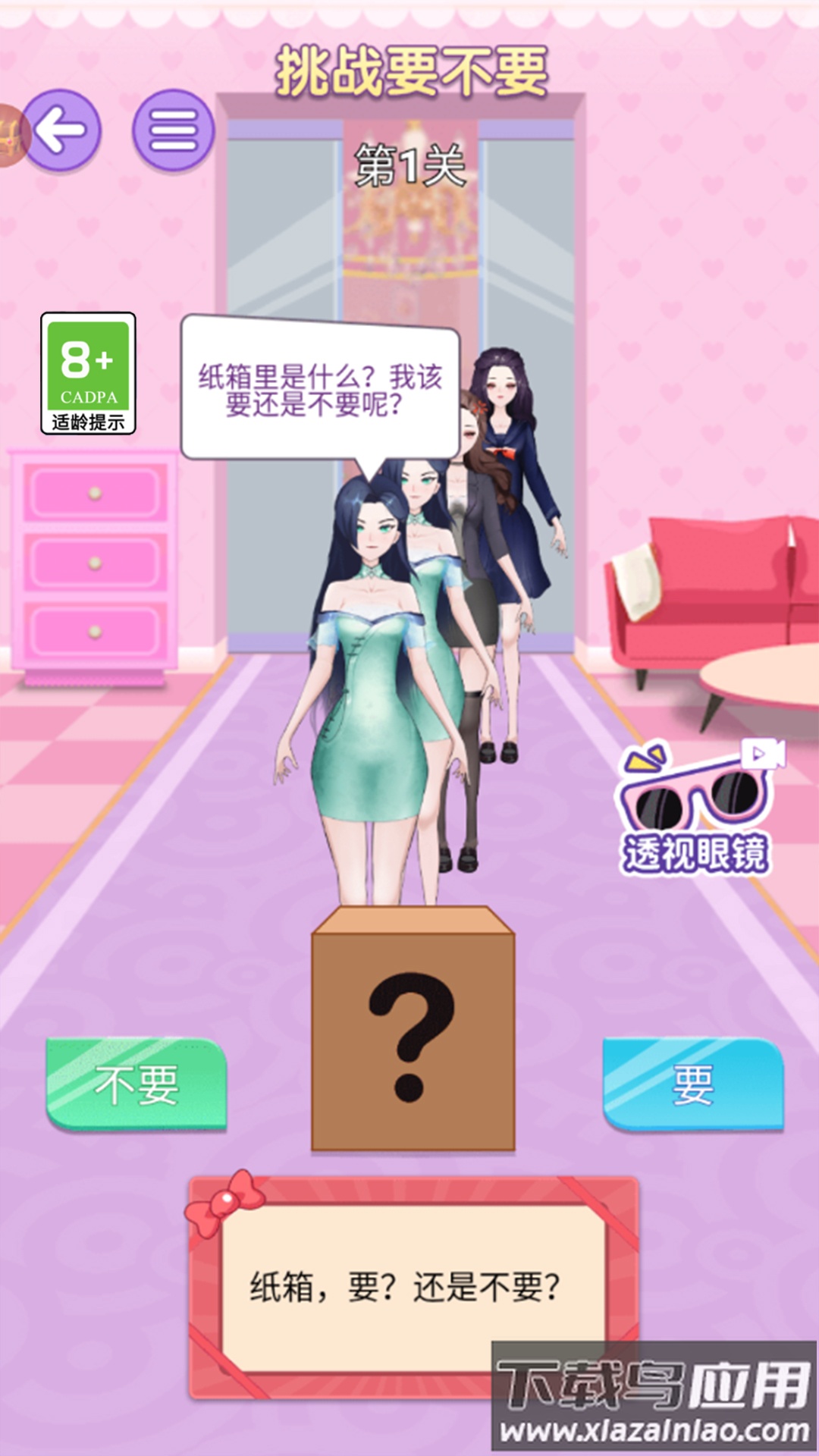 选秀小姐姐是一款轻松好玩的换装益智游戏,玩家通过一系列精心搭配,帮助游戏中的角色焕然一新。游戏画面简洁明快,操作简单易上手,过程中还穿插了趣味整蛊环节,比如猜测纸箱里藏着的惊喜道具,为体验增添了不少欢乐。