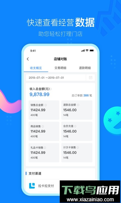 云小店商户端app是专为合作商家设计的移动管理工具,帮助店主便捷掌握店铺运营状况。通过该软件,您可以清晰查看指定周期内的门店收入支出、交易流水及退款详情等数据,从而为经营决策提供有力参考,让日常管理更轻松高效。