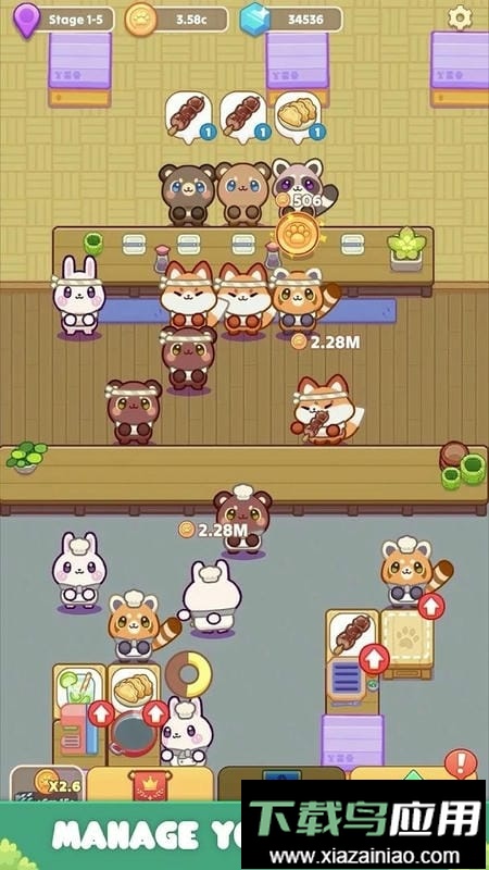 欢迎来到CozyCafe,这是一款移动平台上画风温馨的闲置增量游戏。在这里,你将探访多种主题餐厅,观察可爱的动物服务生与厨师团队如何为顾客烹制美味餐点。通过积累货币并升级美食制作站,你可以逐步解锁视觉风格独特的新场景,持续探索游戏中的趣味世界。