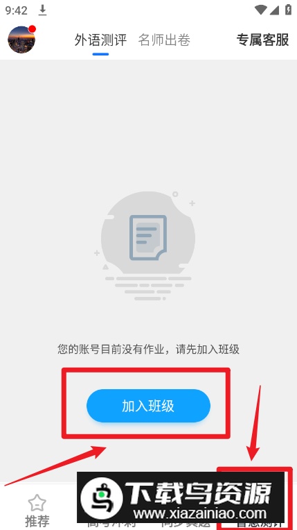 2.进入智慧测评栏目,点击中间的加入班级按钮;