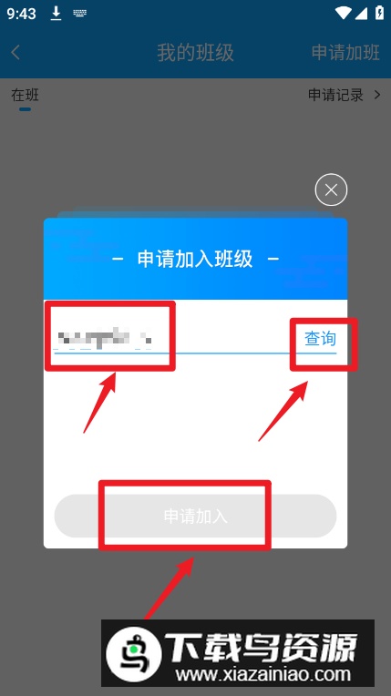5.输入正确的班级申请码,点击申请加入,即可成功加入班级。